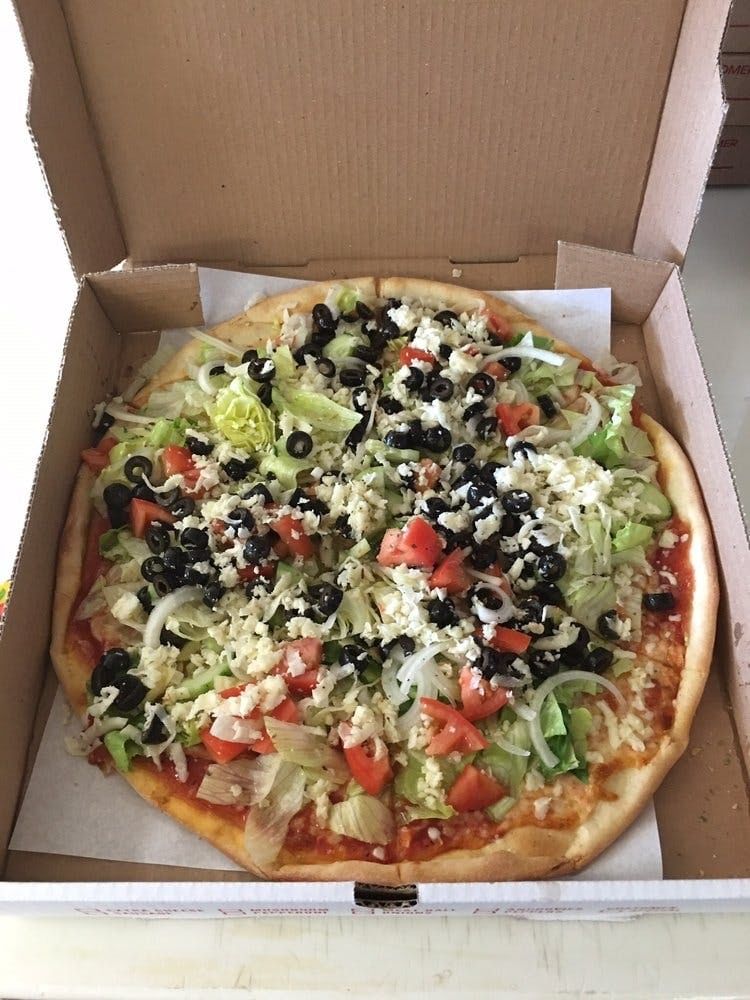 Lettuce, olives, tomatoes, onions, cucumber, and mozzarella & oil & vinegar